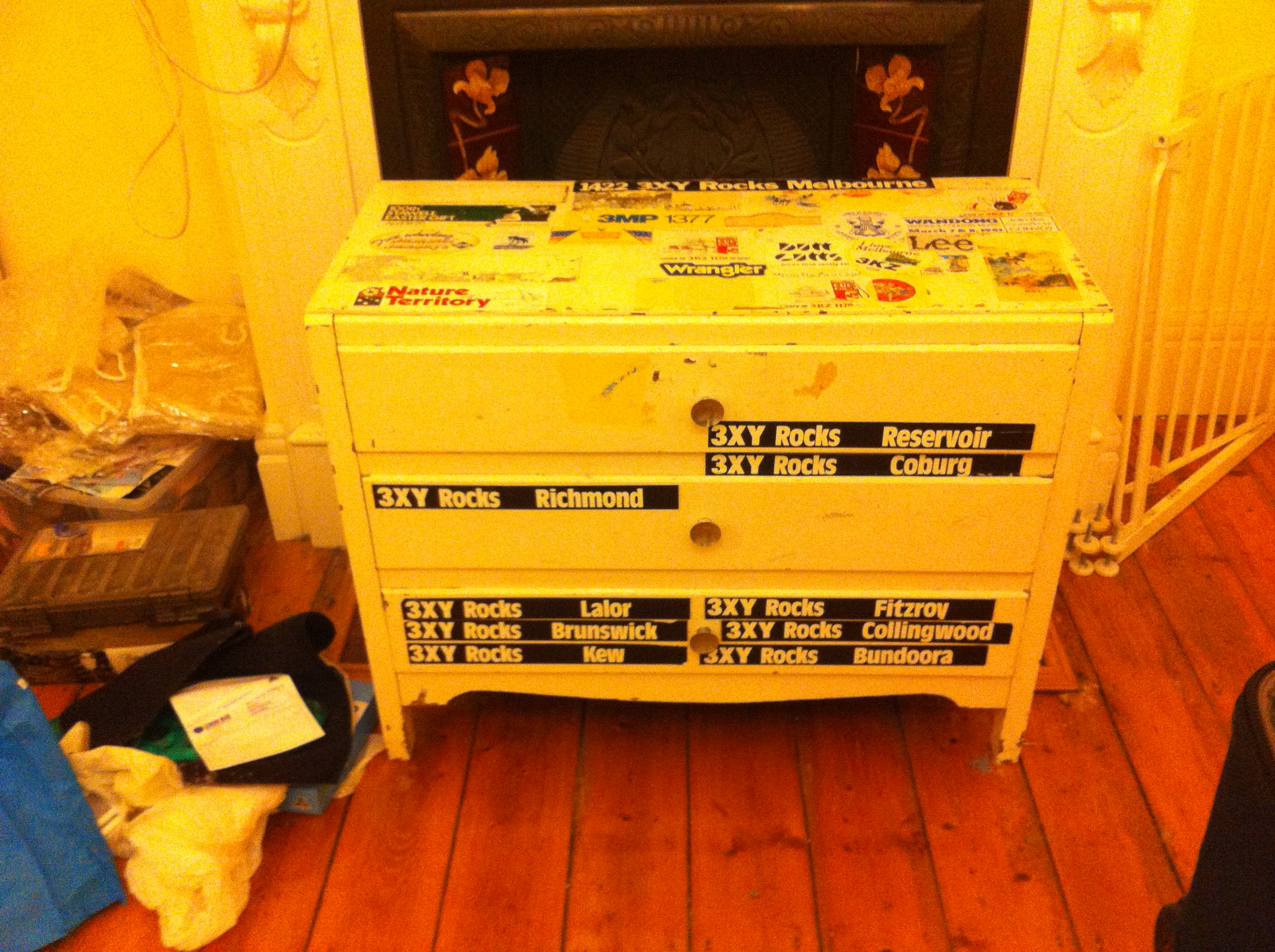 Chest of Drawers. I usually cover the top with a towel so I don’t have to look at all those old stickers.