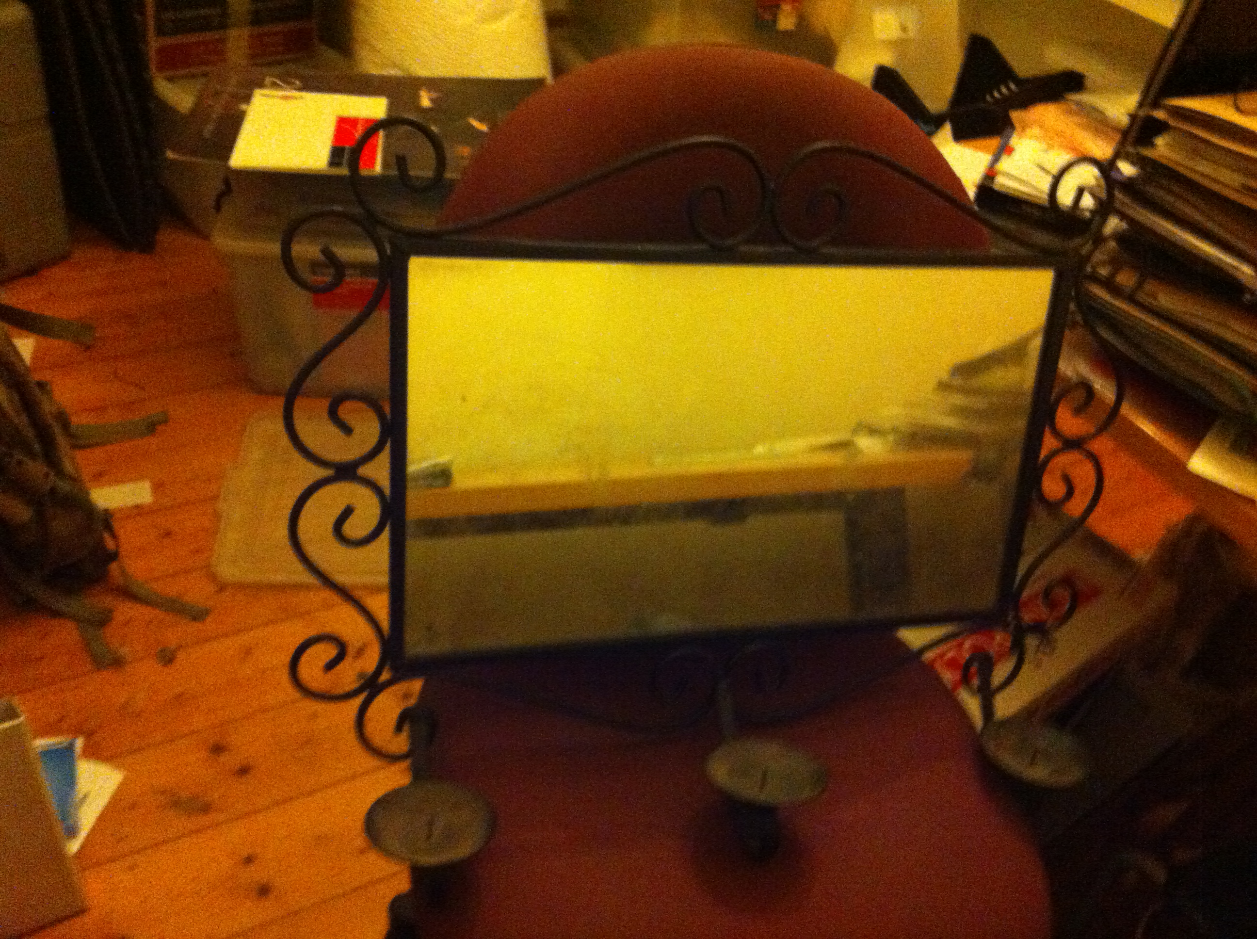 Mirror. I think it’s cast iron. It’s heavy and I’ve never been able to hang it up because of rental properties. Hopefully someone wants it.