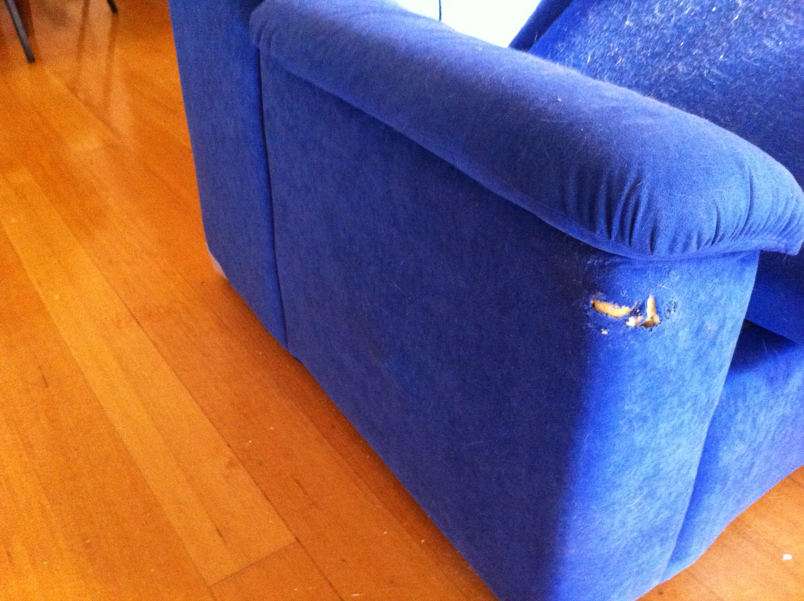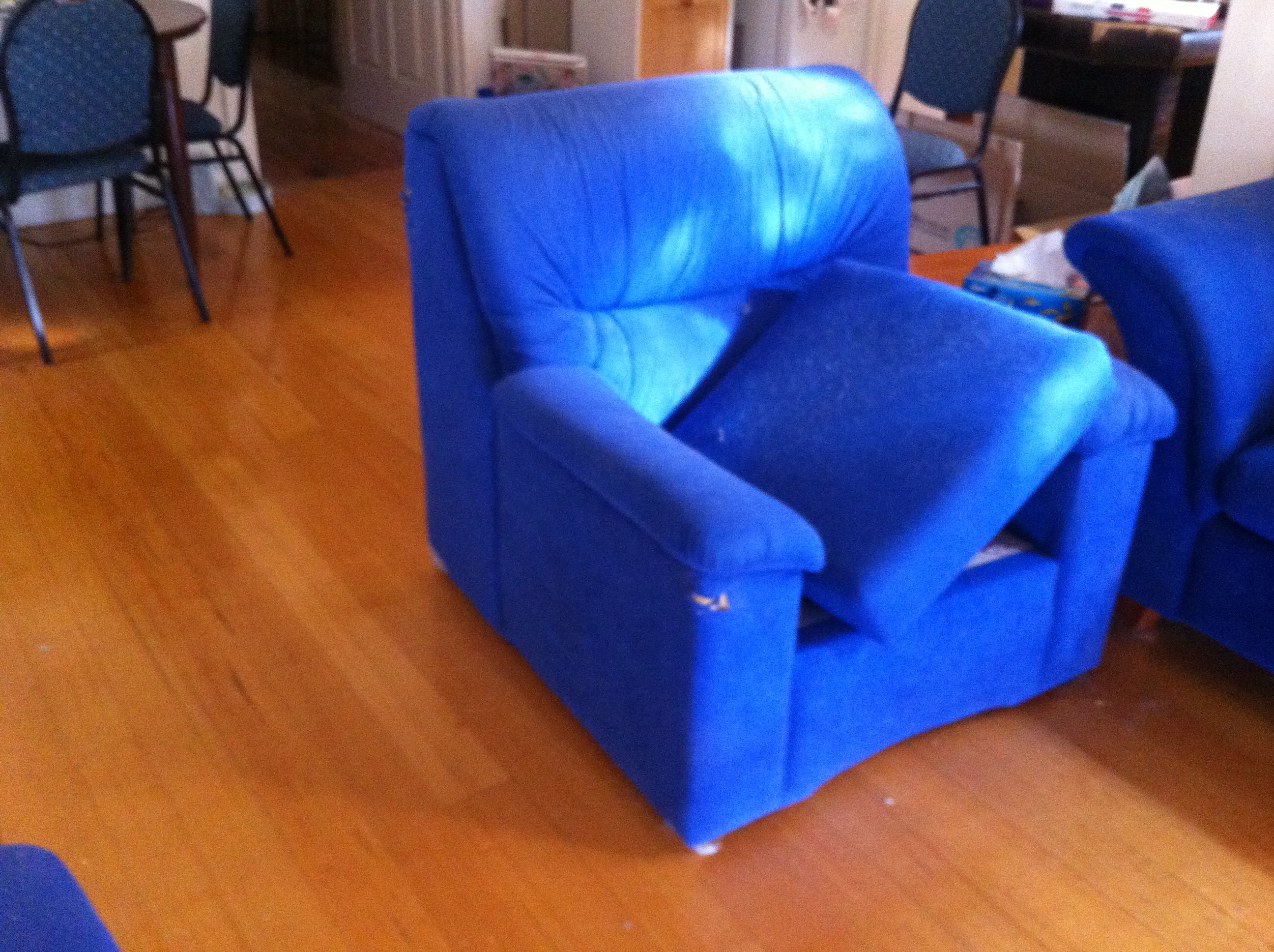 End result is for the most part no. The two single seater armchairs would be about $900 each to recover, plus additional cost to repair the physical damage on the arm of one of them. Considering the two of them plus the three-seater couch were part of a set I got from Super A Mart many years ago, probably for less than the repair costs of one of them, there’s no way they are worth that much to repair.